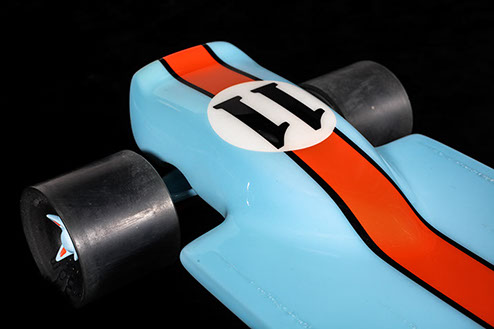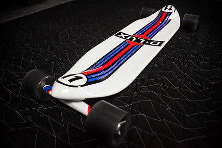 These Longboards ride even better than they look! Sleek shapes constructed from a combination of wood, fiberglass, metal and polycarbonate can be tailored to individual rider specifications and characteristics. Large wheels, low center of gravity, and a wide track provide the platform to achieve superior stability.