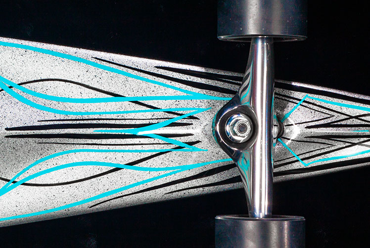 Computerized drawings are available to let you visualize your custom longboard before it's built! All design and graphics work done in-house to allow for a quick, cohesive design.