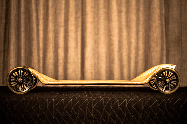 These Longboards ride even better than they look! Sleek shapes constructed from a combination of wood, fiberglass, metal and polycarbonate can be tailored to individual rider specifications and characteristics. Large wheels, low center of gravity, and a wide track provide the platform to achieve superior stability.